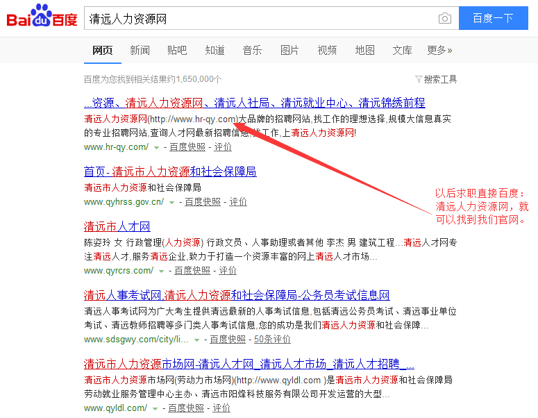 恭喜“清遠(yuǎn)人力資源網(wǎng)”m.gdzjht.com榮登百度搜索清遠(yuǎn)地 區(qū)首位。清遠(yuǎn)人力資源網(wǎng)是由清遠(yuǎn)市人力資源市場指導(dǎo)、清遠(yuǎn)市錦繡 前程人力資源有限公司運(yùn)營的官方求職招聘平臺。從3月份正式推 廣到現(xiàn)在,本網(wǎng)站已經(jīng)吸引了眾多企業(yè)與求職者注冊。